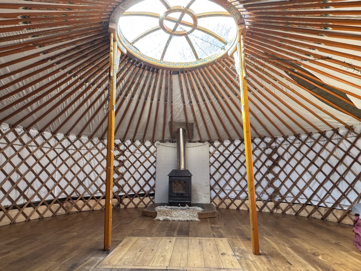 Our 19 foot Mongolian yurt is a beautiful, snug space that can be set-up with chairs, benches, sheepskin rugs, and is heated by a wood burner in the colder months. We will greet you, and introduce you to the space with a short welcome talk about the history of the land and how it has grown in the past years to be what it is today.