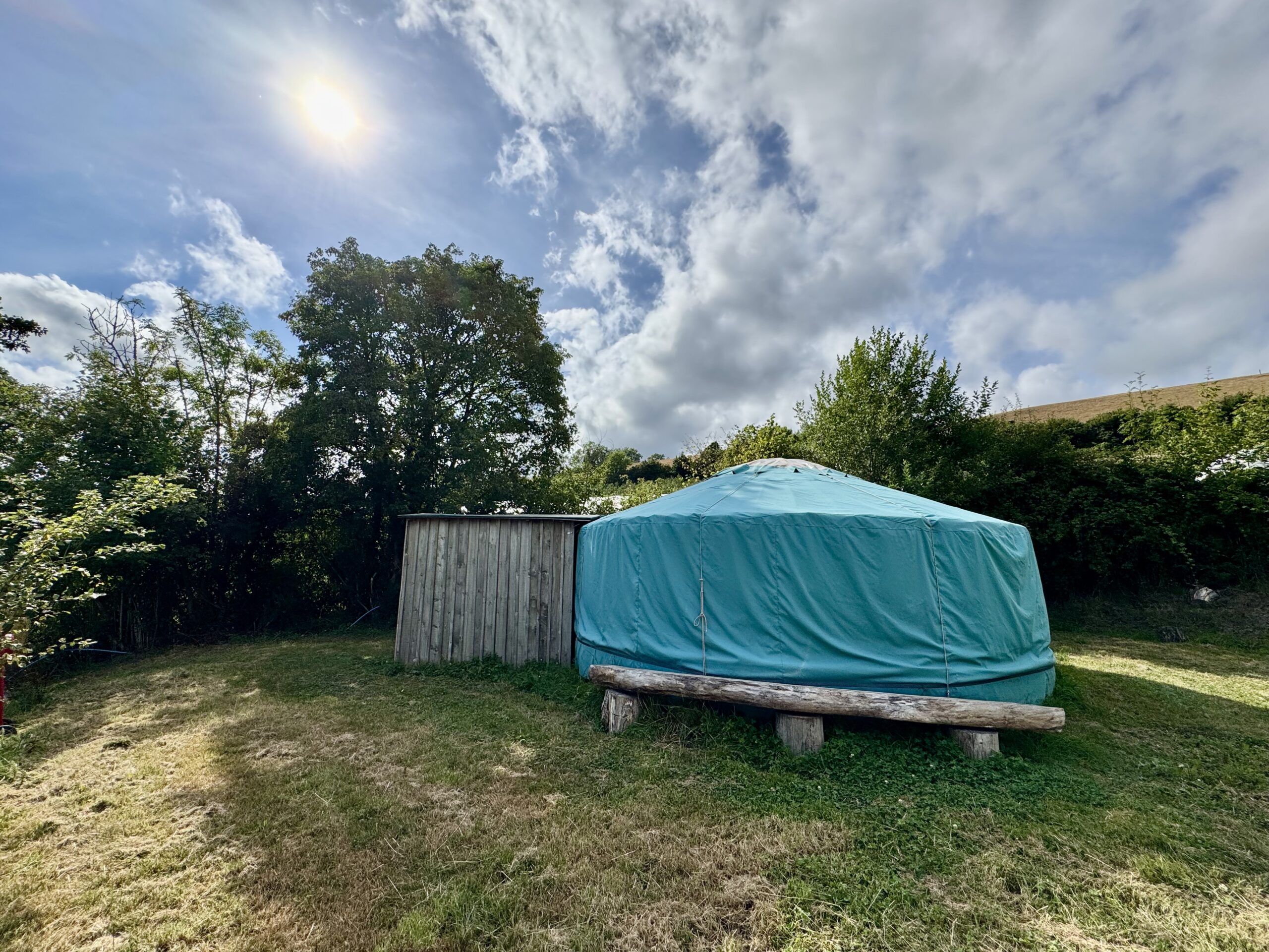 Located at the heart our biodynamically farmed and rewilded land, our Cob Barn is a beautiful meeting space for groups of up to 100 people. Tucked amongst little further up the hill is our 19' Mongolian Yurt, perfect for hosting smaller gatherings of up to 10.