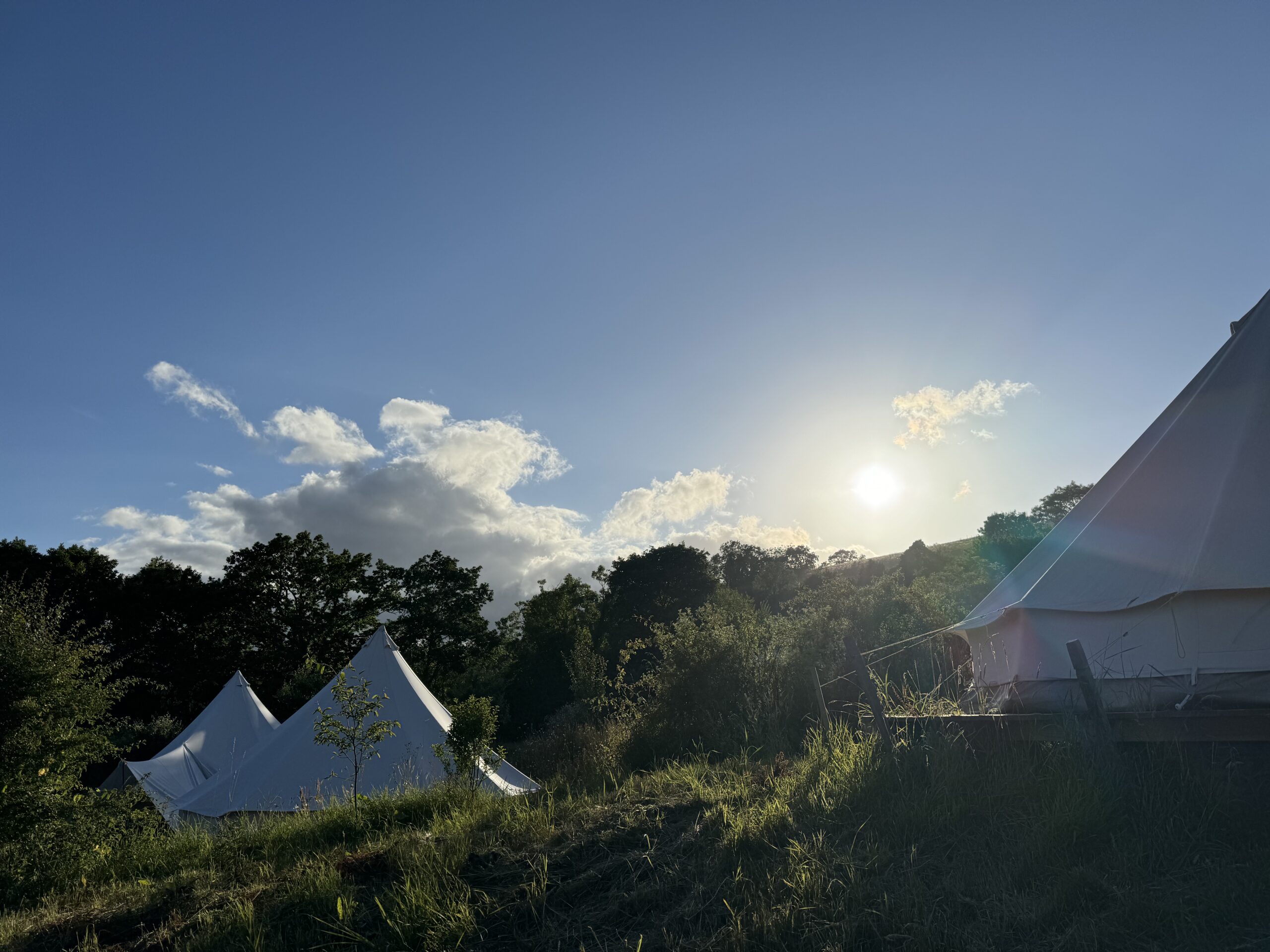 Bell tents are available to hire for your multi-day booking. Arrive to a canvas bell tent complete with up to 4 single mattresses. All you need to do is bring your bedding for a comfy night's sleep.